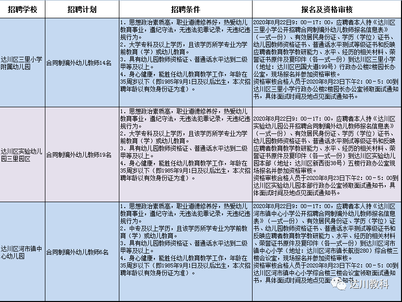 招聘信息綜合自達川區(qū)三里小學、達川區(qū)實驗幼兒園、河市鎮(zhèn)中心小學