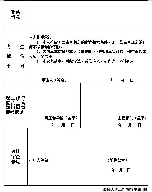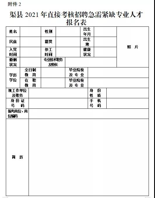 2.渠縣2021年直接考核招聘急需緊缺專業人才報名表